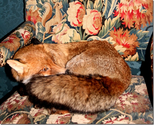 illustration of point: a stuffed? fox in a vintage chair? Well, Hello there!! jumped of course a little bit just as planned by the exhibitors!